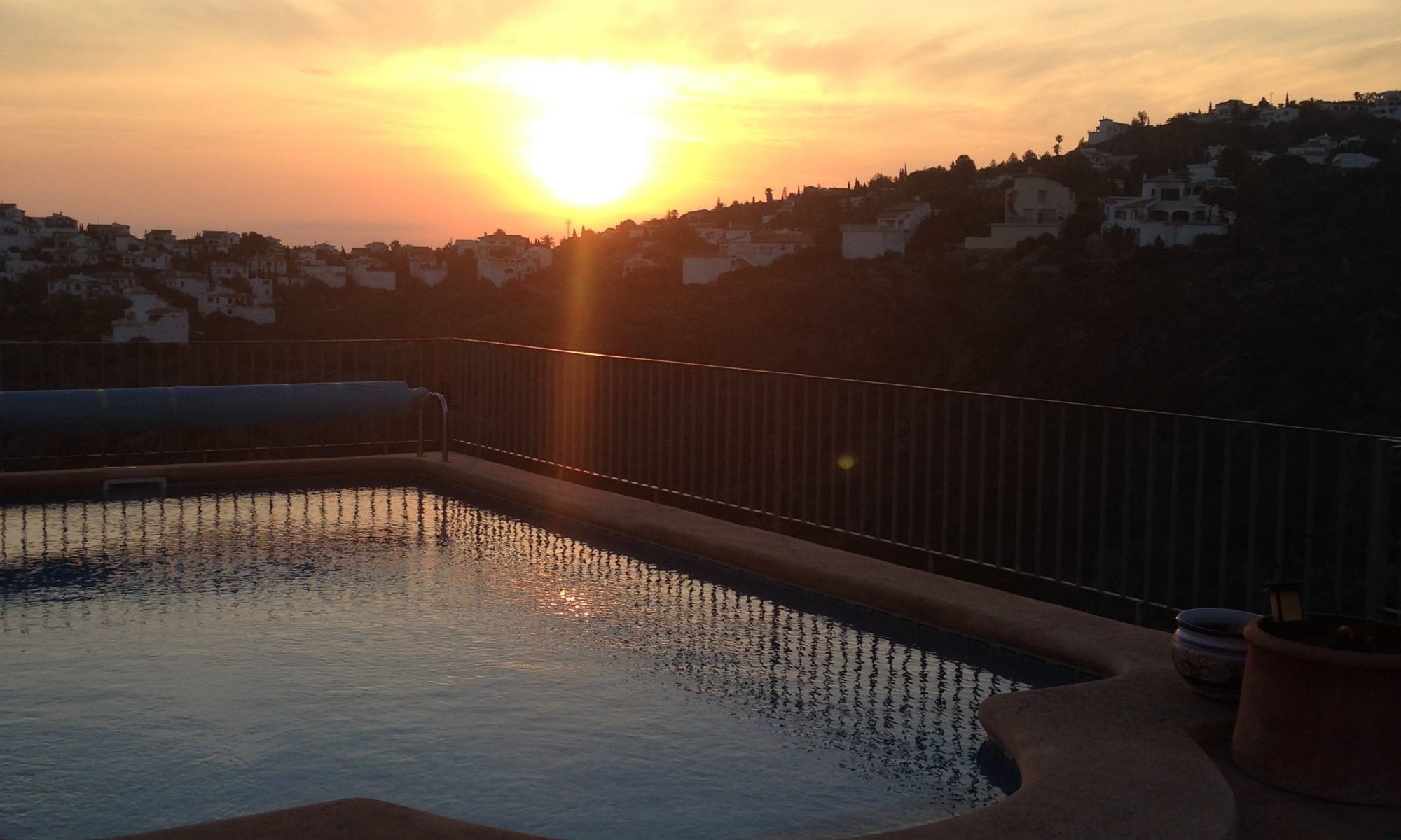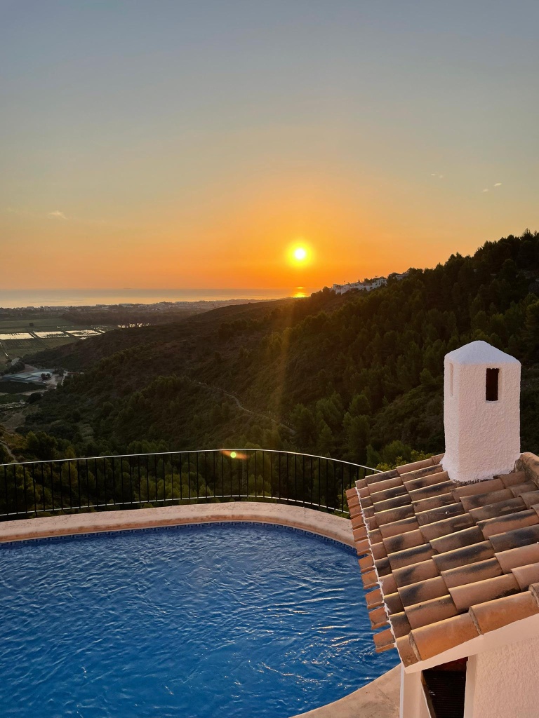 Villa mit privatem Pool mit Meersicht und viel Privatbereich, da keine Nachbarn und atemberaubender Aussicht über die Dächer von Monte-Pego bis hin zum Meer zu vermieten. Verweilen und geniessen im 1’400m2 grossen Garten.